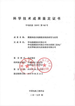 2019年6月12日,中國電機(jī)工程學(xué)會(huì)與中國動(dòng)力工程學(xué)會(huì)聯(lián)合召開了該產(chǎn)品的項(xiàng)目鑒定會(huì),鑒定委員會(huì)認(rèn)為:項(xiàng)目研發(fā)的新型燃煤熱值在線測量系統(tǒng),具備成本低、安全性高、運(yùn)行可靠的特點(diǎn),解決了火電廠燃煤熱值在線檢測的難題,為火電廠鍋爐燃燒控制和精細(xì)化管理提供了技術(shù)支撐,具有顯著的經(jīng)濟(jì)、社會(huì)效益和推廣應(yīng)用前景,居國際先進(jìn)水平。