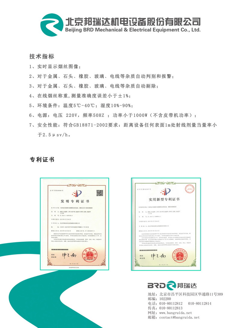 | 上一篇:煙絲填充值在線檢測裝置介紹資料 下一篇:煙絲彈性在線檢測裝置介紹資料 |
