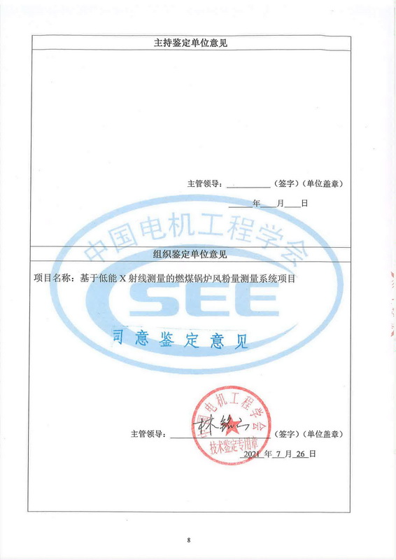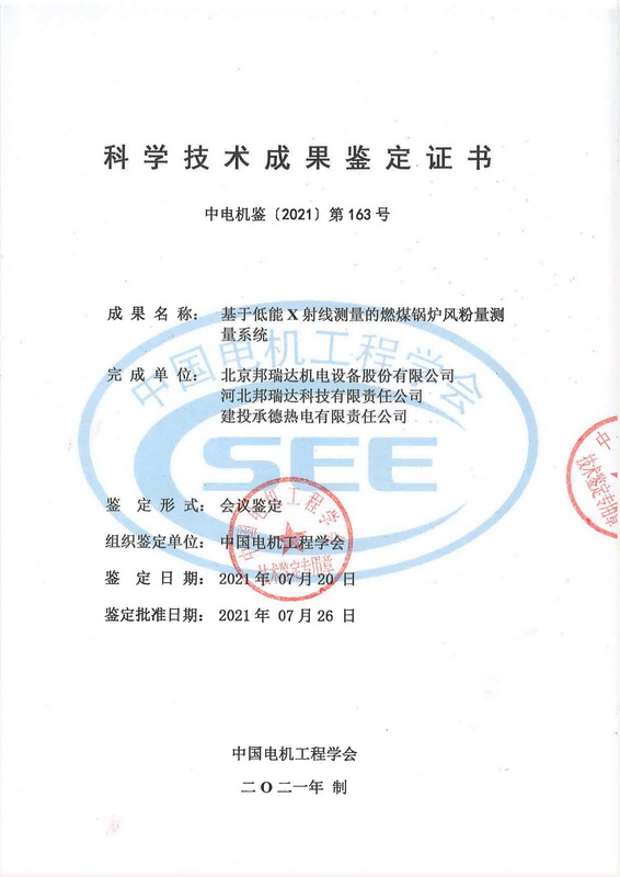 2021年7月20日,中國電機(jī)工程學(xué)會在北京組織召開了“基于低能X射線測量的燃煤鍋爐風(fēng)粉量測量系統(tǒng)”項(xiàng)目技術(shù)鑒定會。